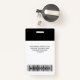 Dieses Schwarz-Weiß-Abzeichen mit eigenem Firmennamen wird einfach mit Foto, Scan-Bar und Firmenlogo personalisiert. Ein einfaches Business-Design in einfarbigen Standardfarben, vollständig anpassbar in Vorder- und Rücken-Größen, serifenlose, einfache und moderne Schriftart und ein berufliches und klares Aussehen. Erhältlich mit Lanyard, Metallklammer oder mit Retraktikett. Keine Mindestbestellung.