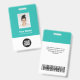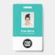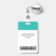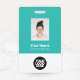 Dieses Light Blue Turquoise Custom Employee Name Abzeichen ist einfach mit Foto, Scan Bar Code und Business Logo zu personalisieren. Einfaches Business-Design in aquamarin türkisfarbenen und weißen Standardfarben, die in Vorder- und Rückengrößen vollständig anpassbar sind, serifenlose, einfache und moderne Schriftart und ein berufliches und klares Aussehen. Erhältlich mit Lanyard, Metallklammer oder mit Retraktikett. Keine Mindestbestellung.