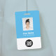 Dieses Light Baby Blue Custom Employee Name Abzeichen ist einfach mit Foto, Scan Bar Code und Business Logo zu personalisieren. Einfaches Business-Design in aquamarin türkisfarbenen und weißen Standardfarben, die in Vorder- und Rückengrößen vollständig anpassbar sind, serifenlose, einfache und moderne Schriftart und ein berufliches und klares Aussehen. Erhältlich mit Lanyard, Metallklammer oder mit Retraktikett. Keine Mindestbestellung.