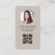 Moderne, minimalistische Visitenkarte mit einer weichen Beige-Farbpalette, einem Foto und einem QR-Code für schnelles und einfaches Teilen von Kontakten. Entwickelt, um Kunden dabei zu helfen, Ihre Details sofort zu speichern, auf Social Media zu verbinden oder Ihr Portfolio anzusehen. Perfekt für Fachleute, Kreative und Kleinunternehmer, die eine saubere, warme und anspruchsvolle Markenpräsenz suchen. Bearbeitbarer Text, Foto und QR-Code-Ziel. Sauberes, druckfertiges Layout.