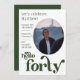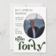 "Hello 40" Geburtstagseinladung mit Foto und dunkelgrünem Text.