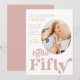 "Hello 50" Geburtstag Einladung mit Foto und hellrosa Text.