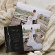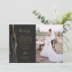 Schicken Sie Ihrer Familie und Ihren Freunden einen besonderen Hochzeitsdanken mit diesen maßgeschneiderten Fotokarten. Auf der links erscheinen die Worte "danke" in eleganter goldfarbener Schrift Typografie auf schwarzem Schiefer-Hintergrund über eine kurze, bearbeitbare Botschaft des Dankes an Ihre Hochzeitsgäste in Copperplate-Schriftart, mit Ihren Namen unten. Ein schwarzer Aquarellrahmen mit goldenem Imitat bestickt den links Rand. Die Rückseite bietet Platz für ein zweites, horizontales Foto.