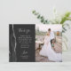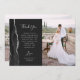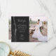 Schicken Sie Ihrer Familie und Ihren Freunden einen besonderen Hochzeitsdanken mit diesen maßgeschneiderten Fotokarten. Auf der links erscheinen die Worte "danke" in eleganter silbergrauer Schrift Schrift Typografie auf einem schwarzen Tonschiefer Hintergrund über eine kurze, bearbeitbare Botschaft des Dankes an Ihre Hochzeitsgäste in Copperplate-Schriftart, mit Ihren Namen unten. Ein schwarzer Aquarellrahmen mit Imitaten beschnitten silbernen Glitzer schmückt den verlassen Rand. Die Rückseite bietet Platz für ein zweites, horizontales Foto.