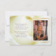 Eine elegante Blumenausstellung oder Beerdigung mit einem auf der Rückseite gedruckten Zitat und einem Template-Foto für den Verstorbenen.