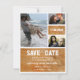 Eine maßgeschneiderte Hochzeit Save the Date mit Foto-Blockdesign und Schnittholzbild
