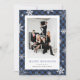 Blue Foto Happy Holidays Card mit Schneeflocken auf blauem Büffel kariertem Hintergrund. Personalisieren Sie diese Business Foto Urlaubskarte einfach mit Ihrem Foto und Firmennamen.