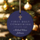 Personalisiertes Foto Blue Religious Cross Junge Erste Kommunion Keramik Ornament.