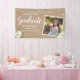 Feiern Sie Ihren Absolventen mit diesem schönen, modernen Foto-Banner! Dieses Design bietet einen benutzerdefinierten grauen Hintergrund, benutzerdefinierte Typografie und Foto. Fügen Sie Ihre Lieblings-Foto-und Abschluss-Informationen, um das Aussehen zu vervollständigen.