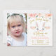 Foto Blumengeblümter Gesicht 1. Geburtstag Einladung Niedliches Foto Hase ersten Geburtstag Einladung für ein kleines Mädchen mit einem süßen Hasen verwandelt ein Imitat Gold Richtung. Das Design umfasst auch eine hübsche Einrichtung mit rosa Blumenmotiven und Punkten. Diese erste Geburtstagseinladung wird die Szene für eine pinkfarbene und goldene, sonnige Geburtstagsfeier für ein kleines Mädchen zum Set bringen.