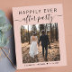 Das moderne Design des Hauses ist zeitgemäß und bietet eine preisgünstige Unterkunft für Hochzeitsgäste und Empfang. Die Vorderseite zeigt Ihr Hochzeitstag Foto und "Happily Ever After Party" in einer Mischung aus einfachen Typografie und trendigen Drehbüchern mit Swashes. Unter Ihrem Foto können Sie Ihre Vornamen und das Hochzeitstermin hinzufügen. Auf der Rückseite personalisieren Sie Ihre Nachricht detaillierter und fügen Party- oder Empfang-Details und Ihre Namen in einem signaturähnlichen Skript hinzu.