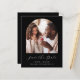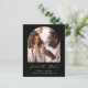 Diese schlichte, minimalistische Save the Date Karte verfügt über einen Boho-Foto-Bogen über den Worten "Save the Date" in eleganter Schrift, gefolgt von den Namen der Ehepaare, Hochzeitstag und Stadt in serifenlosen Sans-Schriftart auf schwarzem Hintergrund. Fügen Sie eine detailliertere Nachricht mit weiteren Informationen auf der Rückseite hinzu.