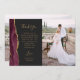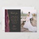 Schicken Sie Ihrer Familie und Ihren Freunden einen besonderen Hochzeitsdanken mit diesen maßgeschneiderten Fotokarten. Auf der links erscheinen die Worte "danke" in eleganter goldfarbener Schrift Typografie auf schwarzem Schiefer-Hintergrund über eine kurze, bearbeitbare Botschaft des Dankes an Ihre Hochzeitsgäste in Copperplate-Schriftart, mit Ihren Namen unten. Ein bordeauxroter Aquarellstreifen mit vergoldetem Imitat schmückt den links Rand. Die Rückseite bietet Platz für ein zweites, horizontales Foto.