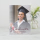 Moderne Abschluss-Ankündigung mit einem individuellen vertikalen Foto. Das Wort "Graduate" erscheint in burgundy-Skript, mit dem Namen, Schule und Jahr des Abschlusses unten in Sans Serif Schriftart. Ersetzen Sie das Beispielbild einfach durch das Foto Ihres eigenen Absolventen. Ein Bildschirm mit weißem Farbverlauf trägt dazu bei, die Pop des Textes zu gewährleisten. Das Gegenteil ist solide bordeauxrot. Ideal für High School oder Uni-Abschluss.