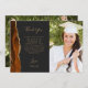 Schicken Sie Ihrer Familie und Ihren Freunden einen besonderen Abschluss Dankeschön - mit diesen maßgeschneiderten Fotokarten. Auf der links erscheinen die Worte "danke" in eleganter, goldfarbener Schriftzeichen-Typografie auf schwarzem Hintergrund, über eine kurze, bearbeitbare Dankesbotschaft an Ihre Abschlussfeier Gäste in Copperplate Schriftart, mit Ihrem Namen unten. Ein verbrannter orangefarbener Wasserfarbenstreifen, der mit Imitaten bestickt ist, verziert den links Glitzer. Fügen Sie der Vorderseite ein vertikales Foto und der Rückseite der Karte ein zweites, horizontales Foto hinzu.