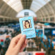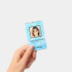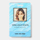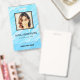 Modernes Foto Geschäft mit Foto auf blauem Hintergrund und Logo. Zusätzliche Informationen können auf der Rückseite dieses Business-ID-Abzeichens hinzugefügt werden