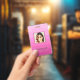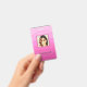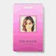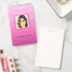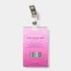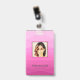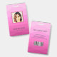Moderner Foto Business ID Ausweis mit Strichcode über rosa polygonal Hintergrund. Zusätzliche Informationen können auf der Rückseite dieses Business-ID-Abzeichens hinzugefügt werden