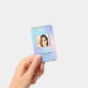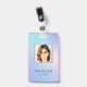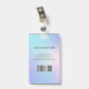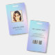 Moderne Foto Business ID Karte mit Barcode über farbenfrohen Hologramm Hintergrund. Zusätzliche Informationen können auf der Rückseite dieses Business-ID-Abzeichens hinzugefügt werden