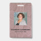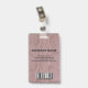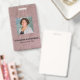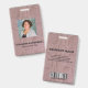 Moderne Foto Business ID Ausweis mit Barcode über rosa Schlangenmuster Imitation. Zusätzliche Informationen können auf der Rückseite dieses Business-ID-Abzeichens hinzugefügt werden