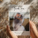 Mit dieser Foto-Kalligraphie Hochzeit bedanken Sie sich stilvoll! Mit ihrem Lieblings-Foto und der wunderschön programmierten Kalligraphie ist diese Karte der ideale Weg, um Ihren Gästen für ihre Liebe und Unterstützung an Ihrem besonderen Tag zu danken. Attribute: *Personalisiert mit Ihrem Foto - Ein herzlicher Wille für Familie & Freunde *Elegantes Kalligrafie-Design - Zeitloses und raffiniertes Aussehen Diese Karte bringt einen durchdachten und stilvollen Weg, "Danke" an Ihre Lieben zu sagen!