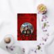 Diese elegante tibetische Hochzeitseinladung besticht durch ein rundes Foto, umgeben von echten Goldfolien-Kirschblütenzweigen und ein echtes Goldfolie-Endlossymbol auf einem schimmernden, blumenroten Hintergrund. Braut und Bräutigam Namen in einem eleganten klassischen Skript.