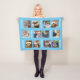 Diese personalisierten Fotocollagendecken schließen 12 Instagram-ähnliche quadratische Bilder plus ein erstes oder den letzten wiederholten Namen 8mal ein (wie Name Ihr Kindes oder Ihr Familienfamilienname). Der Text ist weiß und der Hintergrund ist blau. Benutzen Sie die einfachen Vorlagen, um zu personifizieren. "Fertigen Sie weiter" besonders an, um die Hintergrundfarbe oder die Schriftartfarbe zu ändern.
