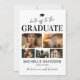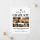 Elegant 2025 Abschluss-Ankündigungskarte mit 6 Fotos des Absolventen, der Text "Hut auf den Absolvent", ihr Name, Klassenjahr, ein Mörtel, das inspirierende Zitat "die Tassel war die Mühe wert", und was ihre Pläne sind als Nächstes.
