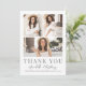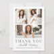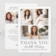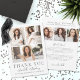 Eine einfache und elegante boho-inspirierte Dankeskarte zum Abschluss mit Fotocollagen für eine persönliche Note. Die Vorderseite zeigt drei Fotos, die in einem sauberen Collagenformat angeordnet und von einem eleganten Rahmen umgeben sind. "DANKE" wird prominent angezeigt, wobei der Name des Absolventen, die Schule und "Jahrgang 2026" (oder jedes andere Jahr) darunter in einer stilvollen Mischung aus Schriftarten für ein modernes und poliertes Aussehen dargestellt werden.