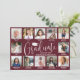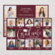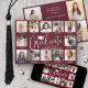 Teilen Sie die Freude über einen Schul- oder Universitätsabschluss mit modernen Foto-Collagen in den Farben Burgunderrot und Weiß. Die Bilder und Texte in dieser Vorlage sind einfach anzupassen und die Farben können mithilfe des Zazzle-Designtools leicht geändert werden. Untertitel unter jedem Foto können die Geschichte des Absolventen durch die Jahre erzählen und Familie und Freunde über Aktivitäten und Erfolge auf dem Laufenden halten. Auf der Rückseite können Sie beliebige Details wie Party-Einladungsinformationen, Namen der Eltern, besondere Ehrungen, Titel des Abschlusses, Lieblingszitate, Kontaktinformationen des Absolventen oder Zukunftspläne hinzufügen. Das dunkle burgunderrote und weiße Design enthält moderne kalligrafische Schriften mit einer Abschlussmütze, elegante klassische Serifenschrift und 16 Fotos Ihrer Wahl, wie z.B. Schulbilder von K-12, Abschlussporträts oder Bilder von der Abschlussfeier. Sowohl als gedruckte als auch als herunterladbare digitale Grußkarten erhältlich, sind diese modernen Abschlusskarten eine stilvolle Möglichkeit, die Feier eines besonderen Tages mit Familie und Freunden zu teilen. Herzlichen Glückwunsch zum Abschluss!