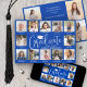 Teilen Sie die Freude über einen Schul- oder Universitätsabschluss mit modernen Fotocollagen-Ankündigungen. Die Bilder und Texte in dieser Vorlage sind einfach anzupassen und die Farben können mithilfe des Zazzle-Designtools leicht geändert werden. Untertitel unter jedem Foto können die Geschichte des Absolventen durch die Jahre erzählen und Familie und Freunde über Aktivitäten und Erfolge auf dem Laufenden halten. Auf der Rückseite können Sie beliebige Details wie Party-Einladungsinformationen, Namen der Eltern, besondere Ehrungen, Titel des Abschlusses, Lieblingszitate, Kontaktdaten des Absolventen oder Zukunftspläne hinzufügen. Das königsblaue und weiße Design verfügt über moderne kalligrafische Schrift mit einer Abschlussmütze, elegante klassische Serifenschrift und 16 Fotos Ihrer Wahl, wie z.B. Schulbilder von K-12, Abschlussporträts oder Bilder von der Abschlussfeier. Sowohl als gedruckte als auch als herunterladbare digitale Ankündigungen erhältlich, sind diese modernen Abschlusskarten eine stilvolle Möglichkeit, die Feier eines besonderen Tages mit Familie und Freunden zu teilen. Herzlichen Glückw