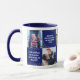 Die personalisierte Tasse des Vaters mit blauen Hintergrund, 5 Fotos für Familien, Imitate goldenen Glitzer, eine Vielzahl von modernen Papa Zitaten, und die Namen der Kinder.