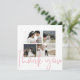 Ein schlichtes, zweiseitiges Foto mit Dankeschön wird von allen Hochzeitsgästen geliebt. Fügen Sie einfach Ihre besten Fotos und ersetzen Sie die Nachricht für Ihre Gäste auf der Rückseite der Karte. Sie können auch die Farbe der Schrift "Danke" ändern.