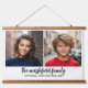 Foto Collage Grid - Text unten - weiß Wandteppich Mit Holzrahmen