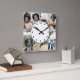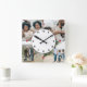 Personalisierte quadratische Wanduhr mit Foto-Collage von 4 individuellen Fotos und kleinen roten Herzen