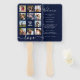 Unser maßgeschneidertes Foto Collage Blue Moderne Hand Fan Programm hält 11 Ihrer Lieblingsfotos und hat einen Platz für Ihre Namen in der Mitte mit dem Wort Liebe in Script am unteren Rand. Auf der Rückseite finden Sie alle Termine und Details zu Ihrem Hochzeitsprogramm.