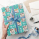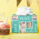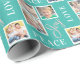 Fügen Sie eine persönliche Touch zu Ihrem Geschenk mit diesem Foto Weihnachtsgeschenk Verpackung. Das Design bietet 4 quadratische Foto Rahmen mit dem Text: Peace Joy Liebe. Der Hintergrund ist aquamarin.