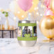 Fügen Sie 5 Familienmitglieder, Neuvermählte, Kinder, Haustiere oder Fotos der besten Freunde hinzu und kreieren Sie Ihren eigenen, trendigen Collage grünen Weintumbler mit Ihrem persönlichen oder familiären Monogramm-Namen in einem Herzen. ++++++++++ Einfach mit Ihren benutzerdefinierten quadratischen Bildern und Buchstaben personalisieren. Es kann ein nettes, nachdenkliches Geschenk für Familienmitglieder, Braut, Bräutigam, Freunde oder Kollegen an einem Geburtstag, einer Hochzeit, einem Jahrestag, Weihnachten oder einem anderen Anlass sein.