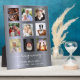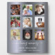 Erstellen Sie Ihre eigene, einzigartige Collage aus Foto. Verwenden Sie vier, neun von Ihrem Lieblings-Foto. Mit dem Text: in liebevoller Erinnerung. Personalisieren und fügen Sie einen Namen und Daten hinzu. Ein Imitat silber metallischer Hintergrund, weißer Text.