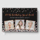 Elegantes, individuelles Gästebuchdesign mit Rose-Gold und Silberkonfetti auf schwarzem Hintergrund, moderne Schriftzeichen mit den Worten "100. Geburtstagskarte" (in Rose Goldfolie), Ihrem Namen und Datum (in Silber) und drei Ihrer Lieblings-Fotos gerahmt in Rose Goldfolie.