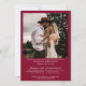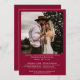 Diese stilvolle Cranberry Red Hochzeit Probe & Probe Dinner Einladung ist modern, elegant und minimalistisch. Es enthält ein Foto des Ehepaares, das mit einem dezenten Text versehen ist und alle relevanten Informationen über die Hochzeitsfeier und das anschließende Abendessen enthält. Einfach, schön und elegant.