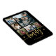 Elegante moderne, handgeschriebene Kalligrafieschrift mit sechs benutzerdefinierten Fotos schwarzer Goldkeepake-Foto-Magnetvorlage. ++++++++++++ Bitte beachten Sie, dass die Hintergrundfarbe geändert werden kann. Sie können das Schwarz durch eine andere Farbe ersetzen, nachdem Sie die Option CUSTOMIZE ausgewählt haben.