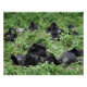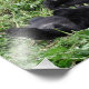 Foto-Druck einer Gruppe wilder Berggorillen mit Silberschmiede und Säuglingen, die im grünen Dschungel des Volkspark in Ruanda an der Grenze zum Kongo und Uganda abkühlen.