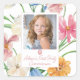 Feiern Sie die Erste Heilige Kommunion Ihres Kindes mit diesem bezaubernden und lebendigen Sticker. Die atemberaubende Aquarellstruktur in Rosa-, Creme- und Grüntönen symbolisiert Wachstum und Erneuerung. Ein zentrierter Rahmen aus Foto fügt eine persönliche Touch hinzu, während das rosa Kreuz die heilige Bedeutung des Ereignisses unterstreicht. Der Text ist elegant in einer Mischung aus Drehbuch- und Serifenschrift-Schriftart präsentiert, was sowohl die Schönheit als auch die Lesbarkeit gewährleistet. Ideal, um diesen fröhlichen spirituellen Meilenstein im Stil zu markieren. B010
