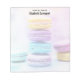 Ein Notizblock mit einem köstlichen Foto mit einem Stapel farbenfroher Makaronen. Lebhafte Farben, die wirklich Pop. Halbtransparente Schicht oben für einfaches Schreiben,