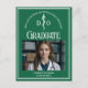 Diese grüne, benutzerdefinierte Osteopathie-Medizin-Abschluss Ankündigung Postkarte für einen DO oder einen Osteopath-Arzt mit einem osteopathischen medizinischen Kadukus-Symbol und Ihr Uni-Foto für die Klasse von 2025. Anpassen mit Ihrem geschlossen Jahr in weißer Typografie für eine große personalisierte Universitätsabsolventenfotografie Postkarten.