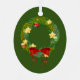 Ihr Foto, Familienname und das Jahr gerahmt in Grün auf der Vorderseite. Der Rücken hat einen Weihnachtskranz. Foto Credit: Fotografie © Storytree Studios, Stanford, CA