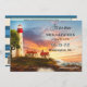 Küste Leuchtturm Save the Date Karte. Diese Save the Date Karte zeigt ein Retrogemälde eines Leuchtturms bei Sonnenuntergang. Auf der Rückseite ist Ihr eigenes Foto in einem nautisch gestreiften Design. Eine QR-Code-Vorlage bietet die Möglichkeit, einfach auf Ihre eigene Website zu verlinken.