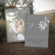 Diese wunderschön eleganten Einladungen werden mit einem handbemalten Olivenzweig in Aquarelltönen gestaltet. Passen Sie mit den Details Ihres besonderen Tages, einschließlich eines Lieblings-Paare-Foto-Set unter einem verblassten Overlay, für klassische unvergessliche Einladungen.