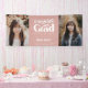 Glückwunsch Grad. Foto-Banner für den Retro Type Graduation Party. Features, Retrotypografie in Weiß auf staubigen Rose rosa Hintergrundfarbe.