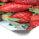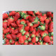 Ein Poster mit einem farbenfrohen Foto mit einem Haufen üppiger roter Erdbeeren.